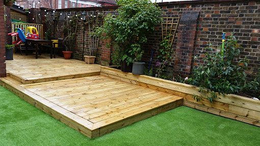 Decking Whether you choose hardwood or soft wood, pine, cedar, balau or any other wood, the deck will create a warm space in your garden. Joseph Mat Landscape can build a deck of any material with an excellent finish. We can integrate lights to enhance even more the beauty of your garden in the night time.